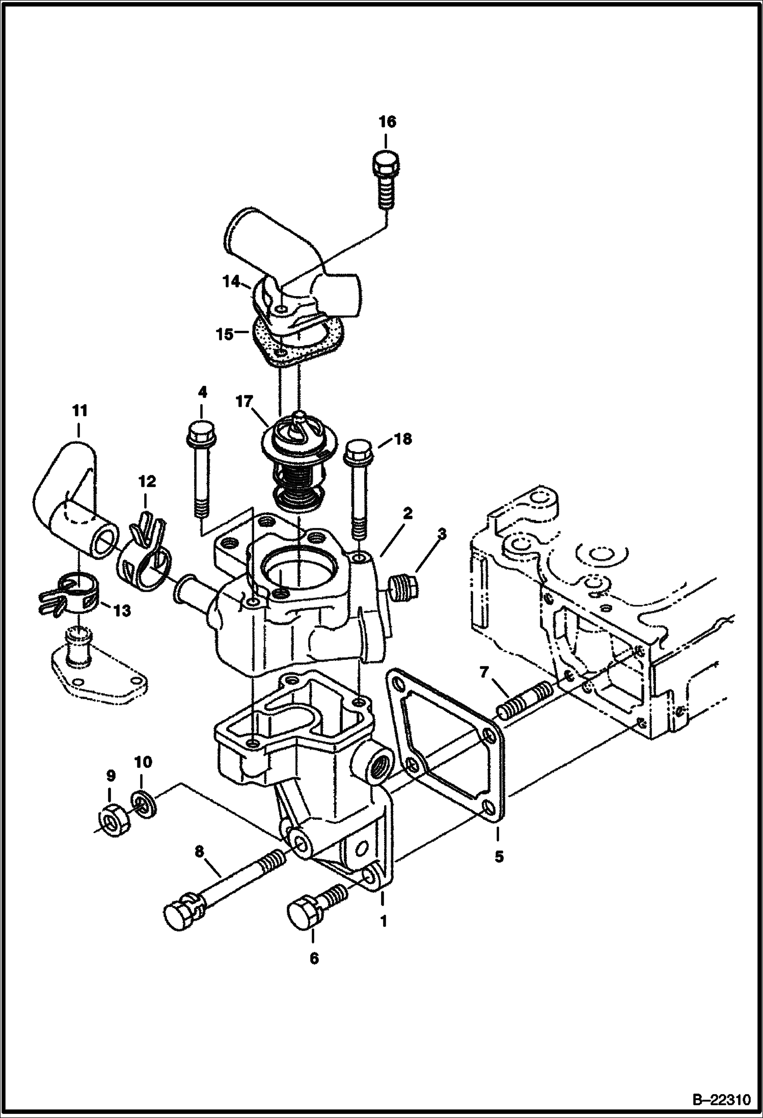 ВОДЯНОЙ ФЛАНЕЦ И ТЕРМОСТАТ (СЕРИЙНЫЙ НОМЕР 562711001 И ВЫШЕ)
