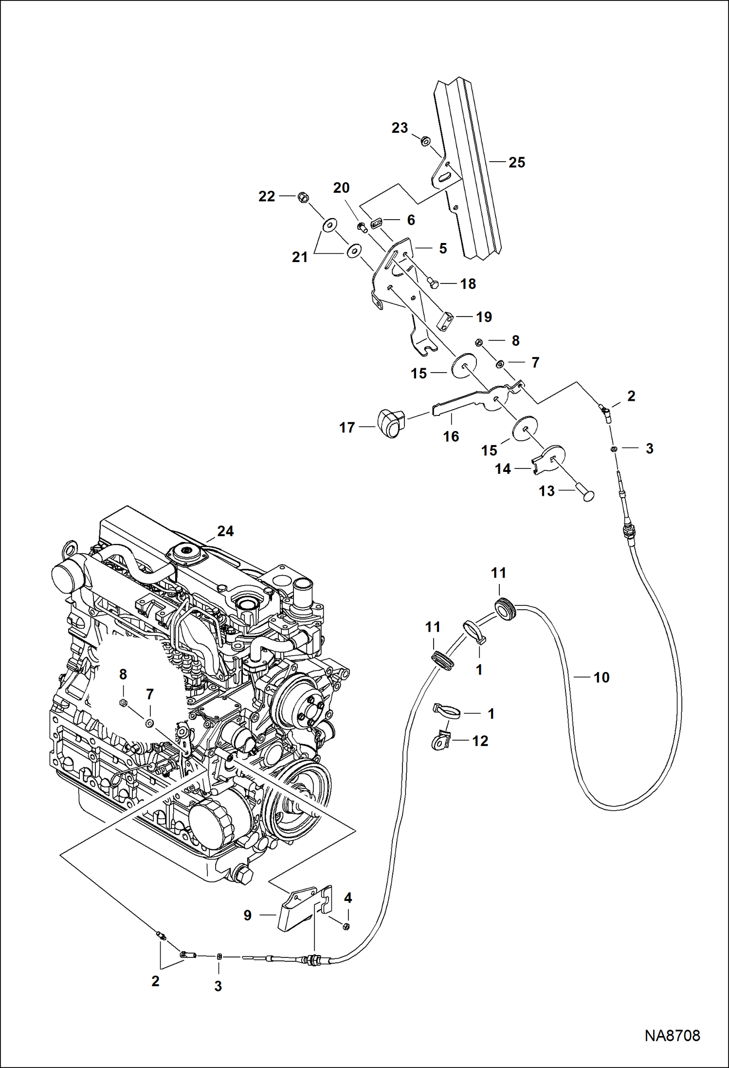 УСТРОЙСТВО РЕГУЛИРОВАНИЯ ОБОРОТОВ ДВИГАТЕЛЯ (МНОГОРЕЖИМНЫЙ ДЖОЙСТИК УПРАВЛЕНИЯ) (4224 ММ) (166.3--) КАБЕЛЬ МЕХАНИЗМА РУЧНОГО УПРАВЛЕНИЯ - (2469 ММ) (97.2--) ШТЕКЕРНЫЙ РАЗЪЕМ КАБЕЛЯ