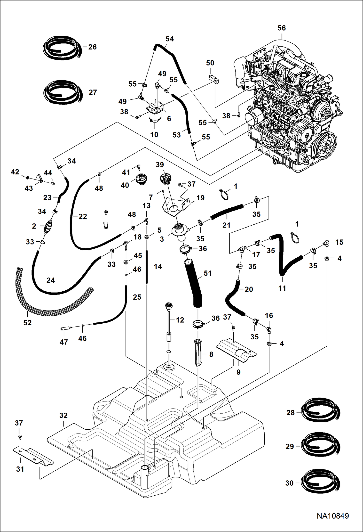 ДВИГАТЕЛЬ И КРЕПЕЖНЫЕ ДЕТАЛИ (СИСТЕМА ПОДАЧИ ТОПЛИВА) (ОДИН БАК) (СЕРИЙНЫЙ НОМЕР ANKA15001 И ВЫШЕ)