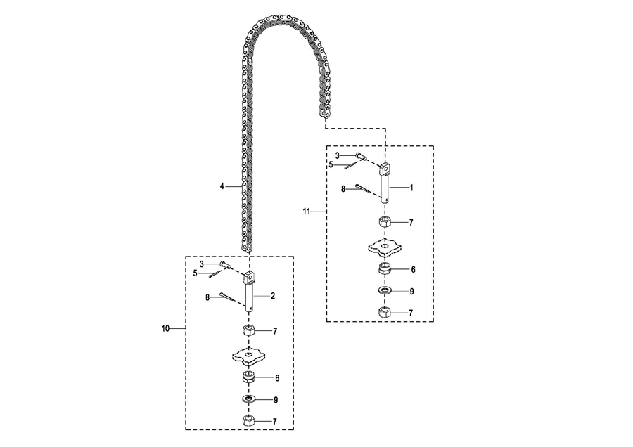 0121 Full Free 3-Stage Mast Chain Assembly 全自由三级门架短链条总成