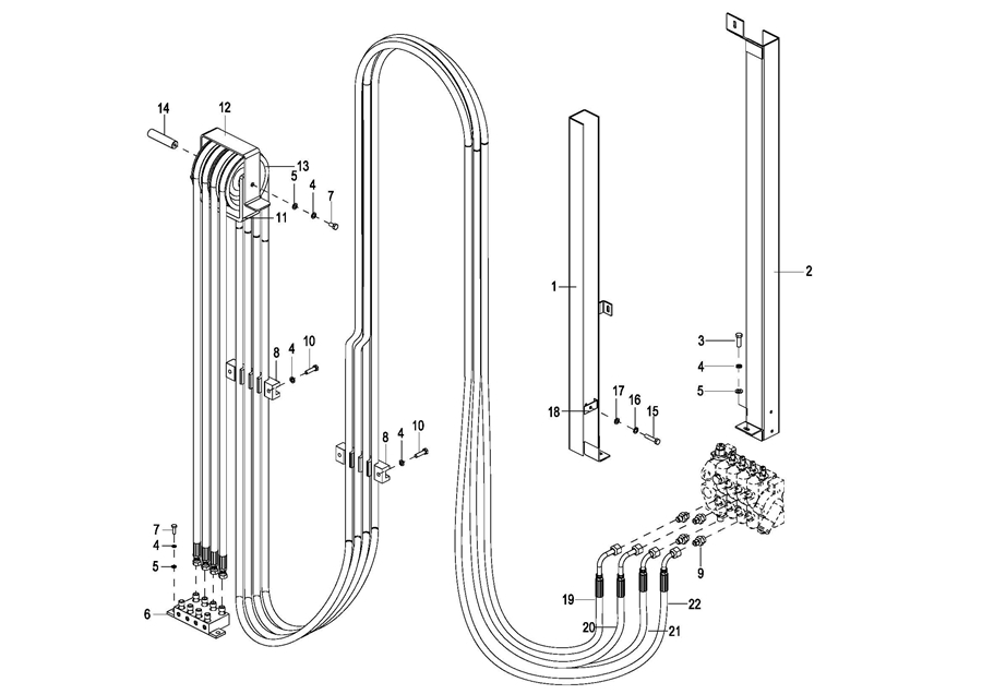 0126 Full Free3-Stage Mast Hose Assembly 全自由三级门架油管总成
