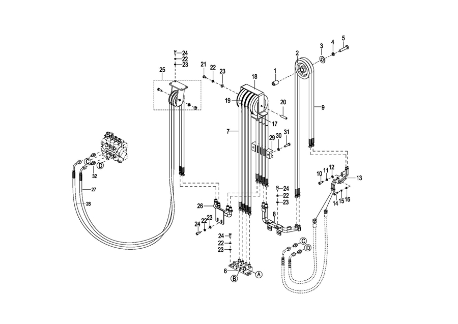 0117 Full Free 2-Stage Mast Hose Assembly 全自由二级门架油管总成