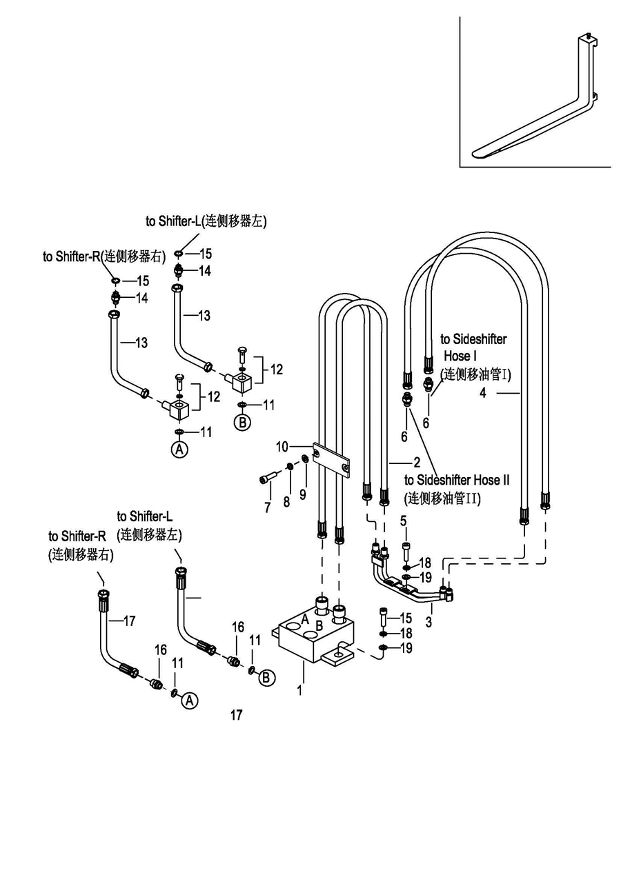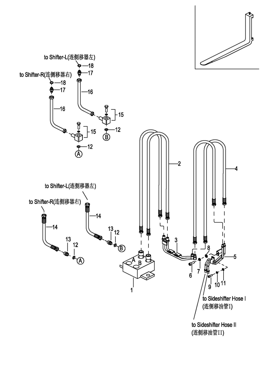 0704 3-Stage Mast side shifter Hose Assembly全自由三级门架侧移器油管总成