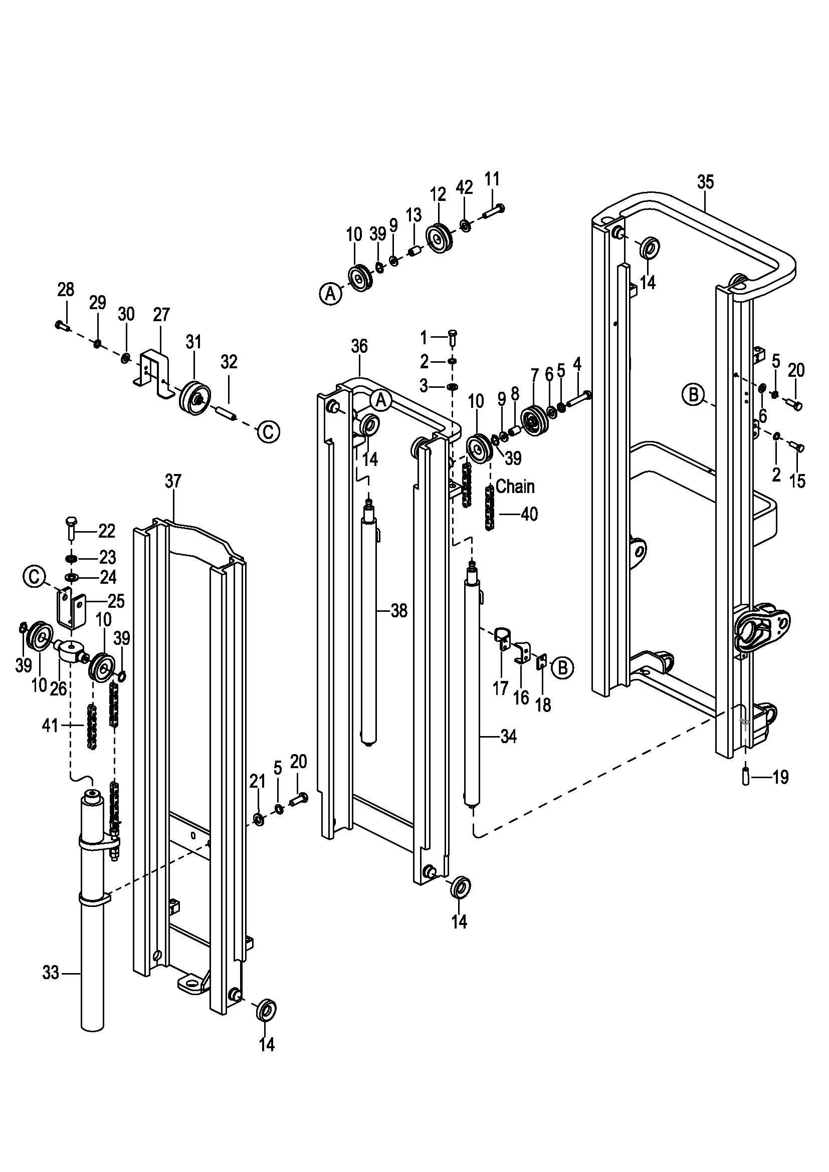 0710 Full Free 2-Stage Mast Assembly 全自由二级门架总成