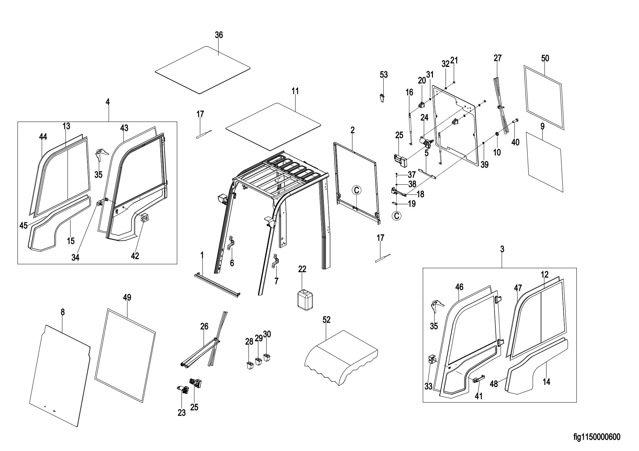 0101 Cab 驾驶室(S.N.Before-2331301468)( Parts for maintenance only. If you need to purchase cabin parts to the vehicle without it before, please confirm with us firstly)