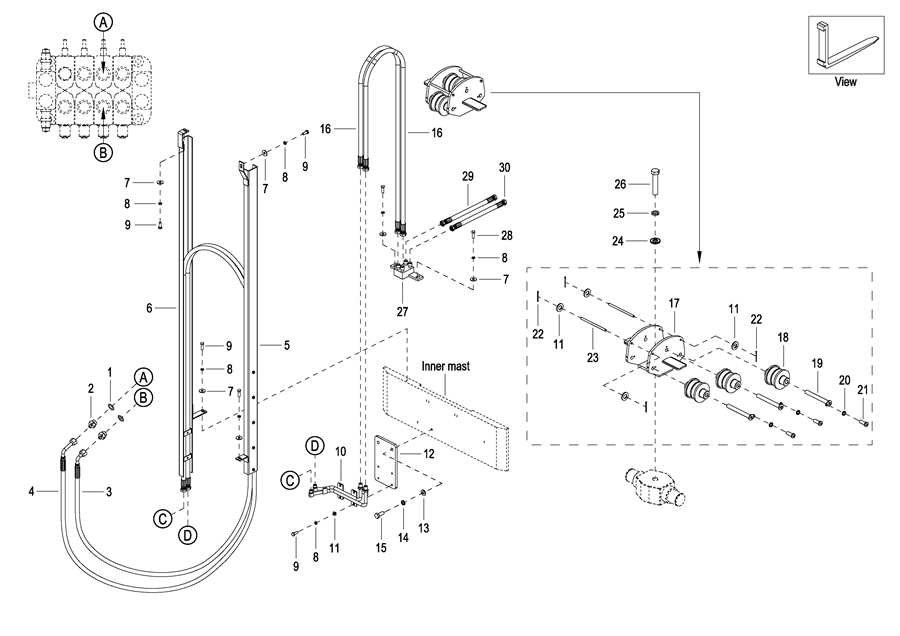 0104 LIFT CYLINDER INSTALLATION (2W)起升油缸安装(二级宽视野)